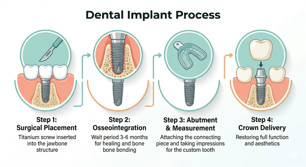 The complete dental implant process is somewhat framed like this: ( can include flow chart)